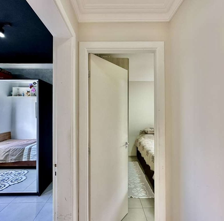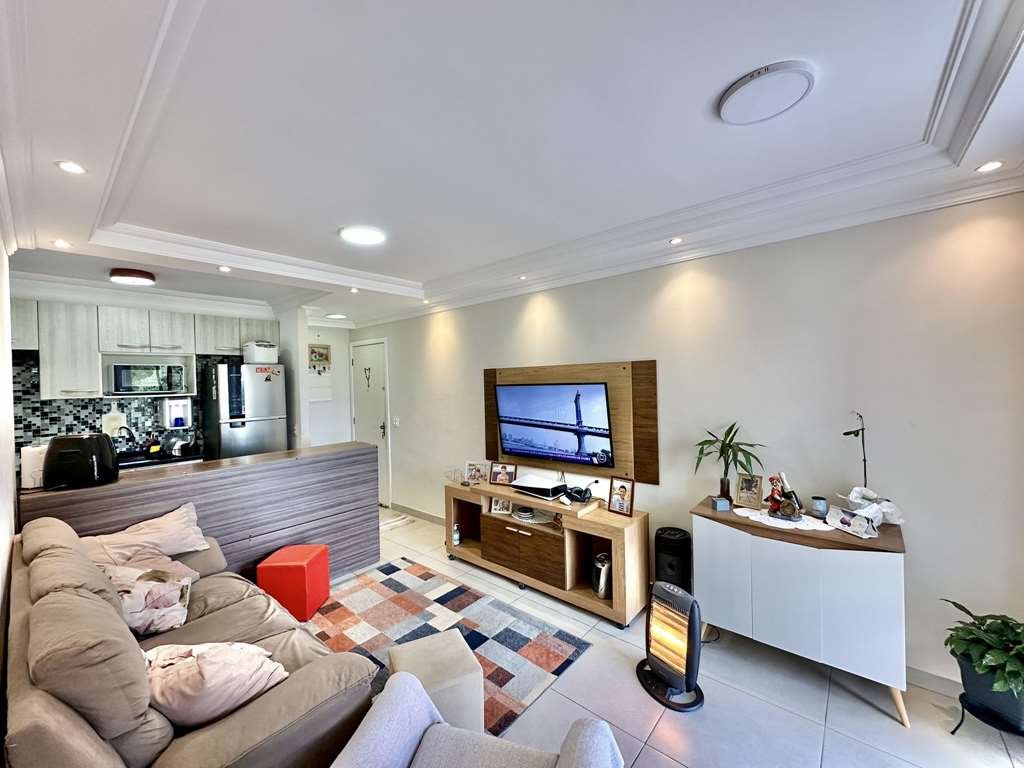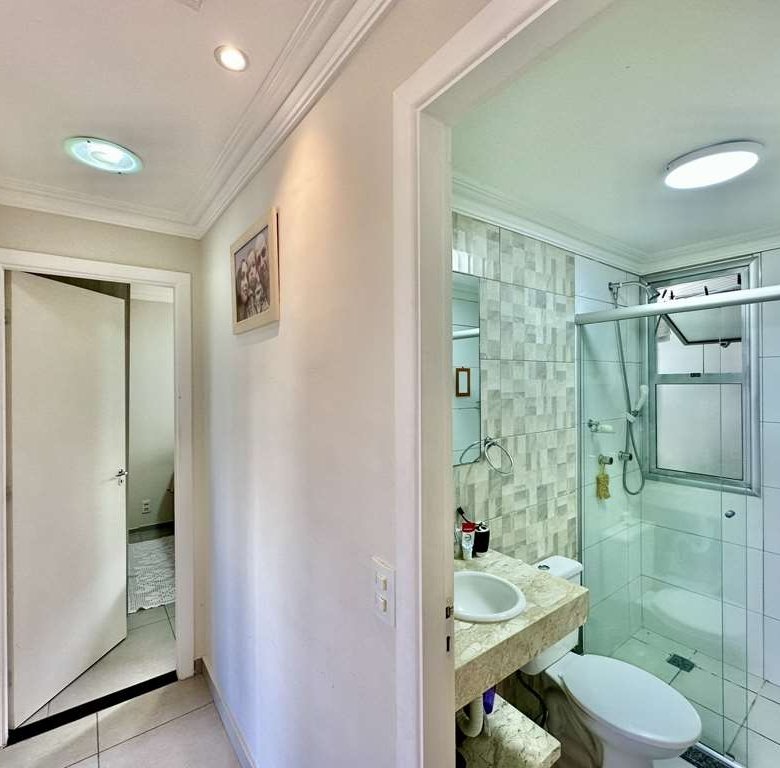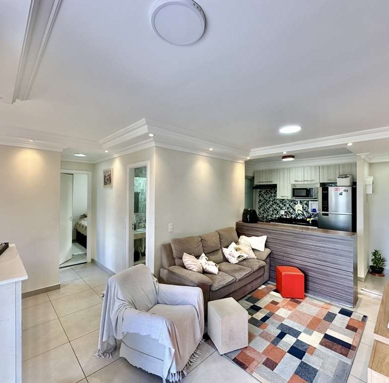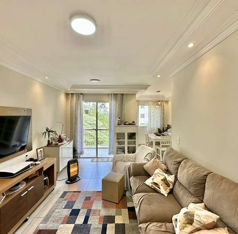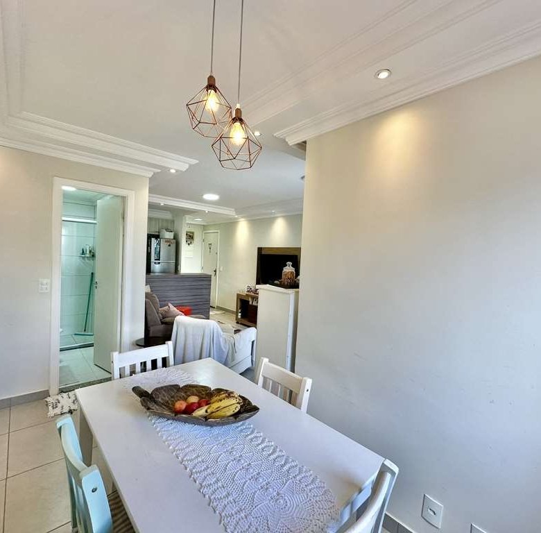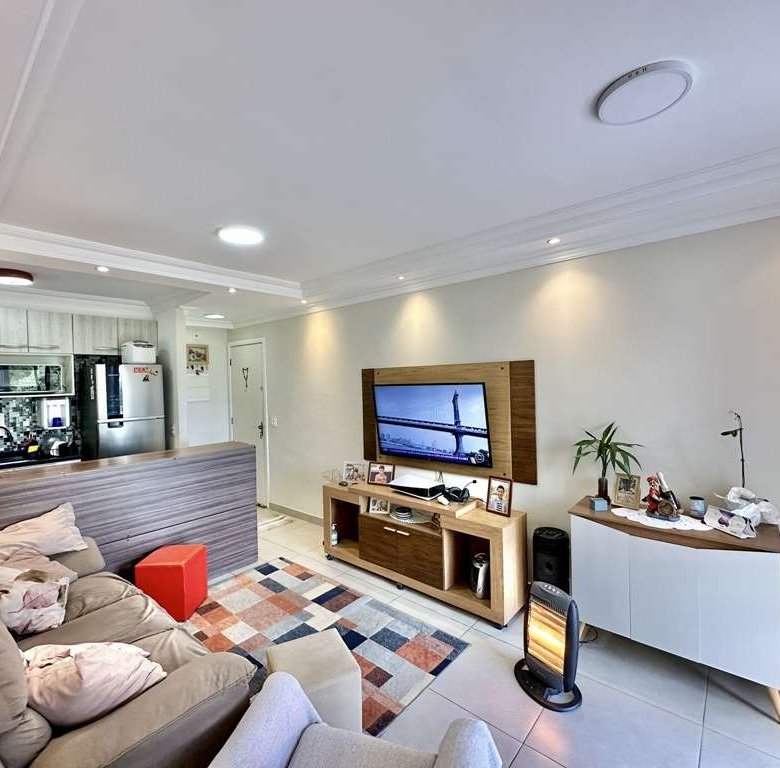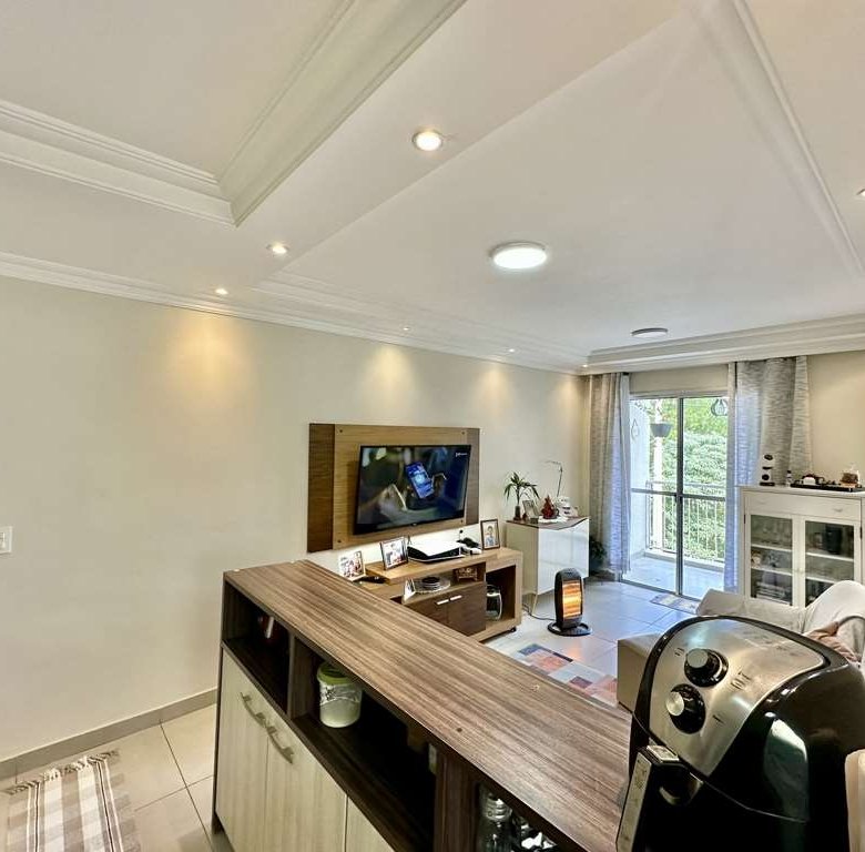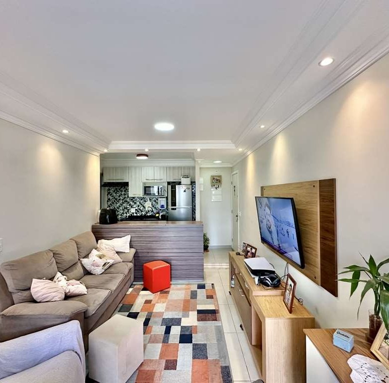 • 🛋️ Living Ampliado: A planta original de 3 dormitórios foi inteligentemente adaptada. O 3º quarto foi aberto para criar uma sala de estar e jantar integradas e espaçosas, com teto rebaixado em sanca e iluminação embutida.