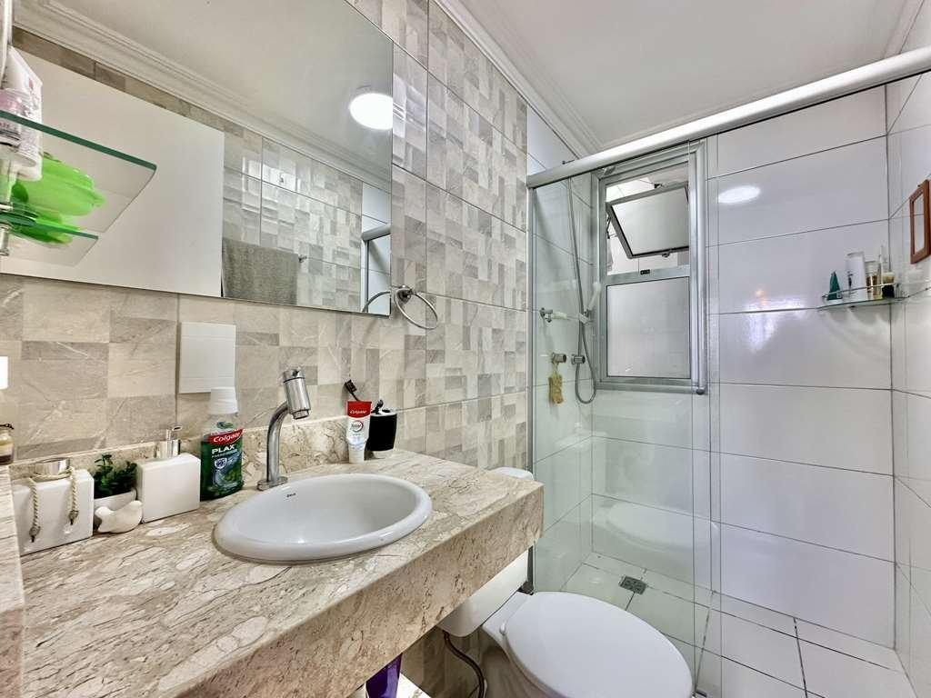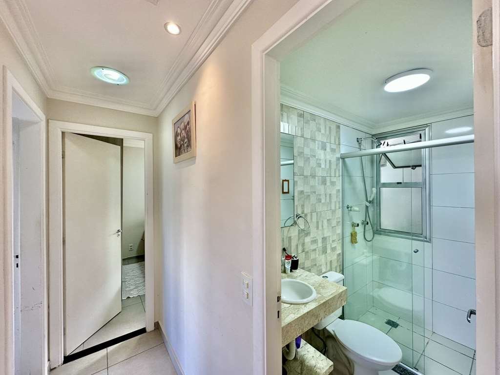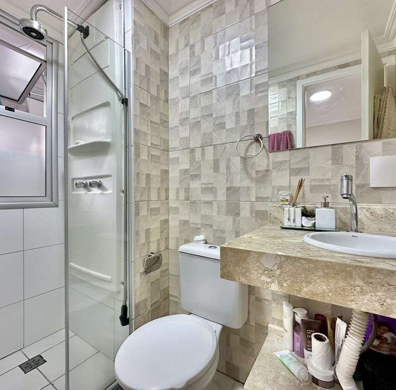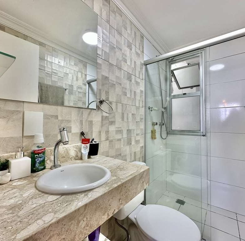 • 🚿 Acabamento: Banheiros com box de vidro e tampo em mármore. Cozinha americana integrada com armários planejados de qualidade.
